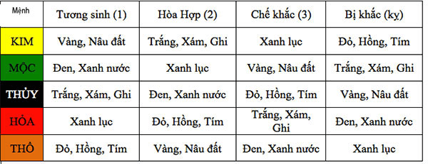 Đối với người mệnh Thổ: nên sử dụng màu vàng đất, nâu đất, hồng và đỏ để tạo sự ổn định và sự cầu toàn.
